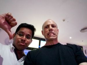 You’ll find the same stuff here as always – espresso, pictures of wings and engines, Hindi and Tamil movies, shots out the hotel window at the luxurious Marriott Whitefield in Bangalore. Some cows, lot of traffic. Dinner, lunch, more espresso. Got to meet Jaison for the first time. Met Vishal for the first time outside of Ciber. Great lunch with the innovation team that built our gamification app and Amazon Echo integration. Went on a team outing that ended up being a crazy hike through the woods. Found a restaurant right across from the office, and managed to not get run over! Met the Life Cycle Services team for an afternoon session at Cafe Coffee Day at the food court, on a nice early summer afternoon (well, summer in Bangalore). Another wonderful home cooked Andhra Pradesh dinner courtesy of Goutham and Jaya. Got home to a LOT of snow which fell just after I left home.