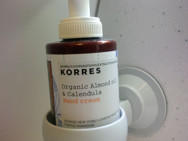 This is cool – organic vegan hand lotion in the Business Class lavatory.