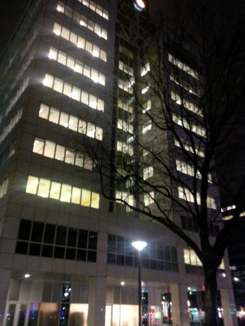 Rare evening pic of Ciber office building.