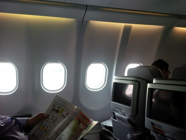 I do miss having windows. But I learned that middle Business Class seats mean nobody crawls over you when they need to get up, and you don’t crawl over anybody. Besides, what’s there to see at 35000 feet but clouds.