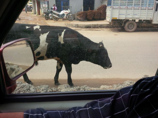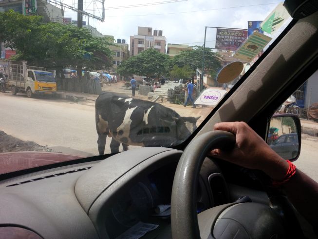 Mohan says no cows in Hyderabad, only dogs.