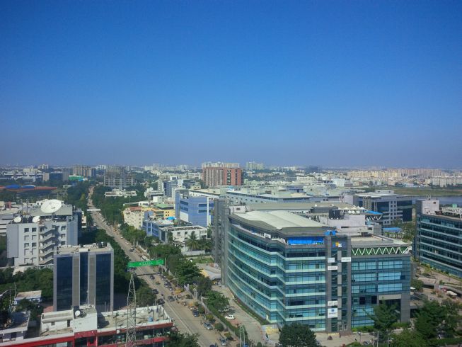 Hyderabad. I like this pic because you can see the big red Oracle sign in the distance.