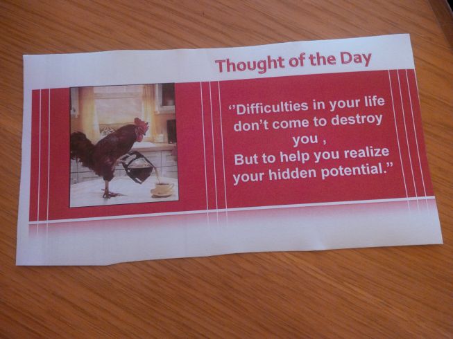 Amar still hands out thoughts of the day. I love going to a hotel halfway round the world and being welcomed by name 🙂
